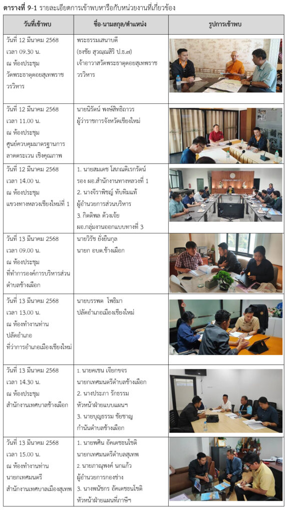 9.1 การเข้าพบปรึกษาหารือกับหน่วยงานที่เกี่ยวข้อง