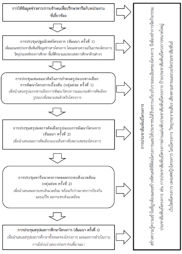 – เพื่อประชาสัมพันธ์และให้ข้อมูลโครงการเบื้องต้น พร้อมทั้งรับฟังข้อเสนอแนะเพื่อนำมาใช้ ประกอบในการศึกษาโครงการ โดยมีการเข้าพบหน่วยงานในพื้นที่ศึกษา เช่น